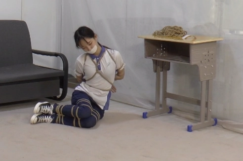 清醒过来的小A发现自己已经被捆绑起来了,全身上下都被捆的紧紧的。
