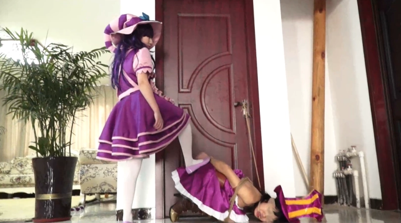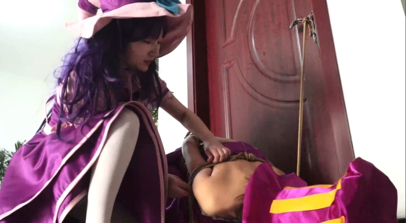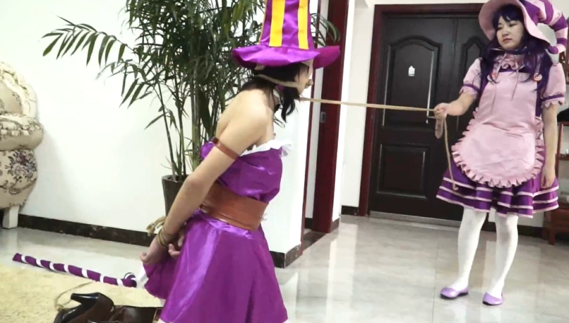 糖果女巫的反击,魔杖解开绳子后对凯特琳的报复,解开绳子的糖果女巫比凯特琳更狠,将其捆绑后又逼其跪着行走,最后将她绑在门口,踩在她身上表示永远的征服