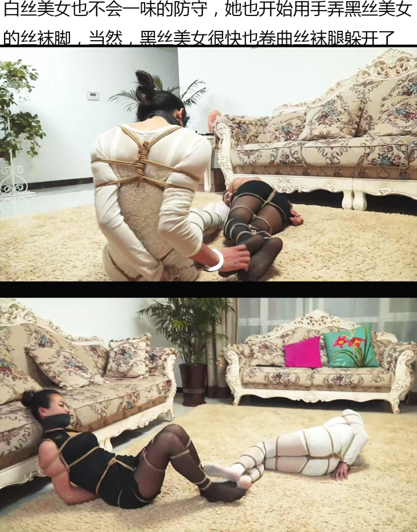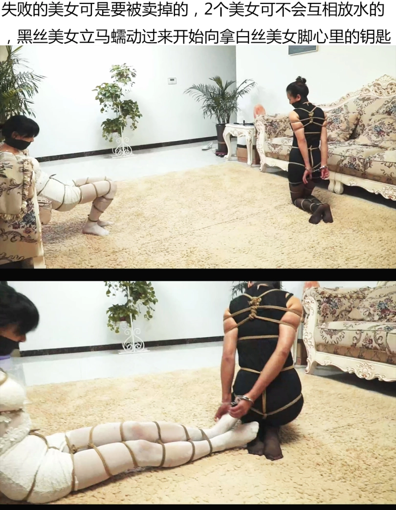 2个美女绑架捆绑,手被手铐锁死,2个人只能逃一个,而她们的手铐钥匙却在对方的丝袜脚心中,于是一场别开生面的比赛开始了。大量丝袜美足特写