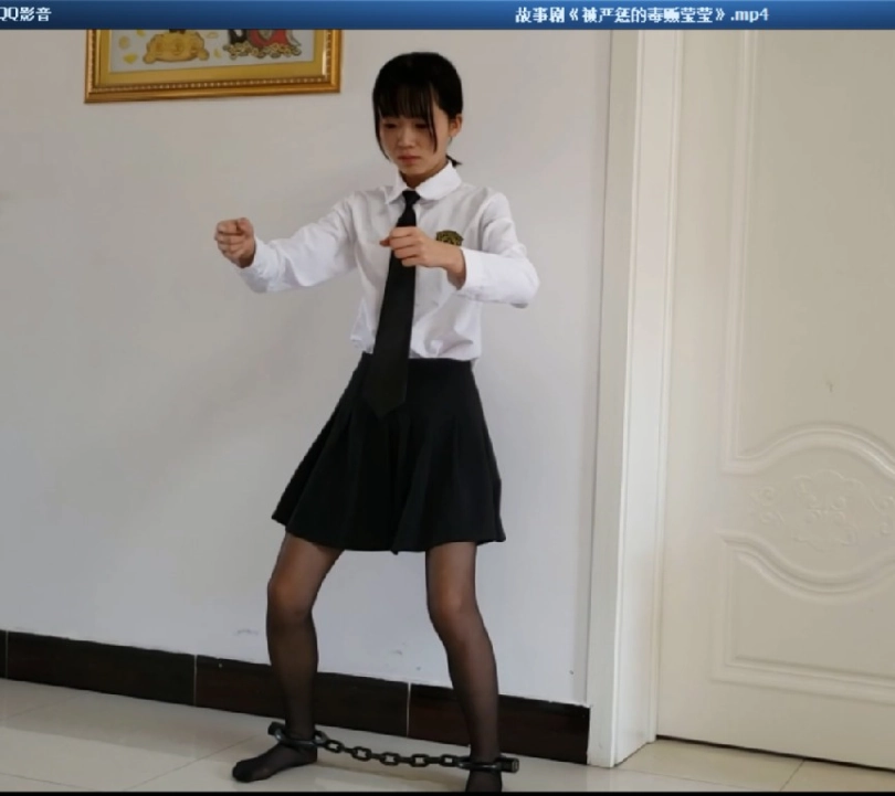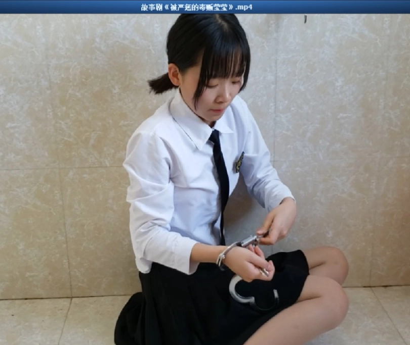 莹莹拒不交代 莹莹平举双手 你看我手那么小 手铐不一定铐的住我对吧