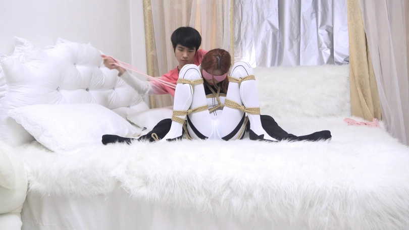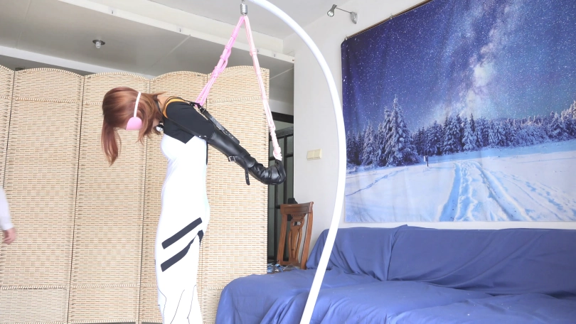 让妹子体验了一下紧身衣单手套吊绑,开腿捆绑,已经被紧紧的捆绑起来还想反抗,自然要调戏一番啦