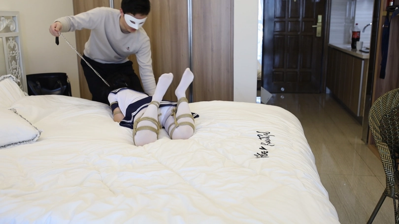 白丝小萝莉被绑成忠犬式了,只能让你牵着走了。四肢着陆被挠小肚子的感觉也是很诱惑。