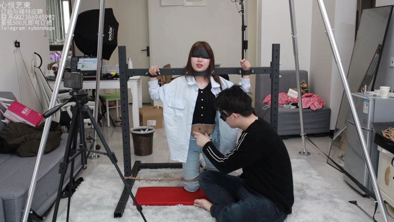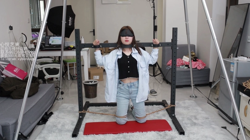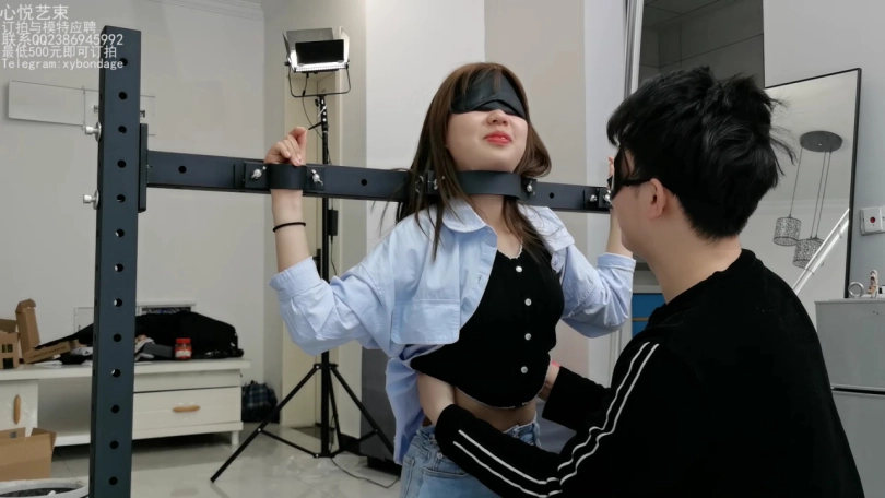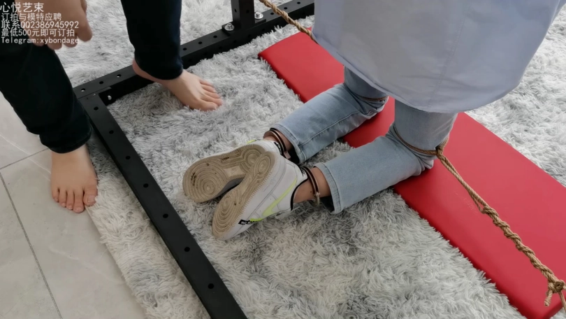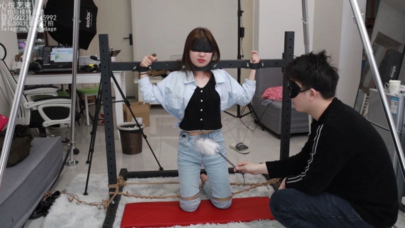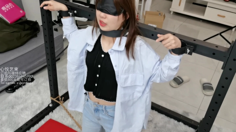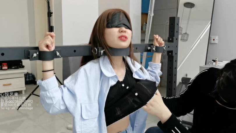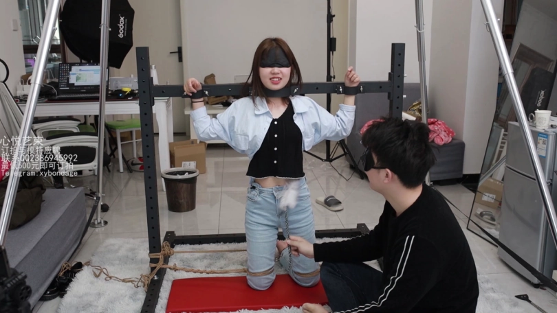 文文这个月被我忽悠来做我的助手了,哼哼,那不得整天整天的被我折磨。这不,专门弄了个拘束架给她罚跪用。脖颈和手腕锁上,脚上在戴着手铐用绳子分开固定死。只能承受我的咸猪手了。