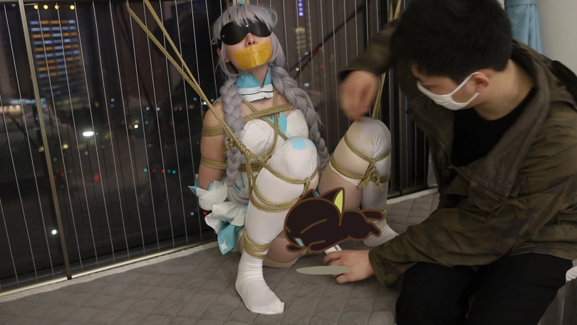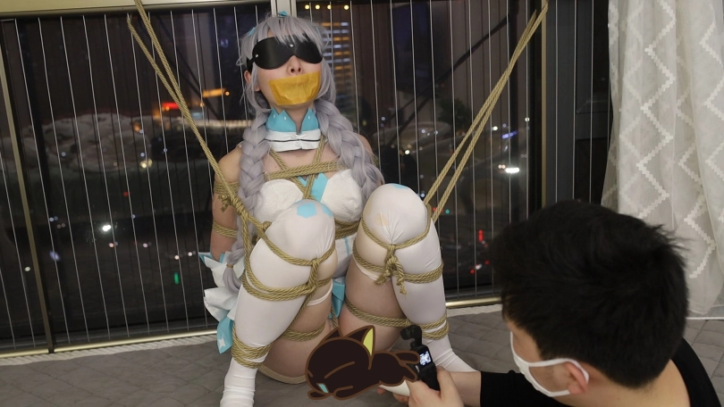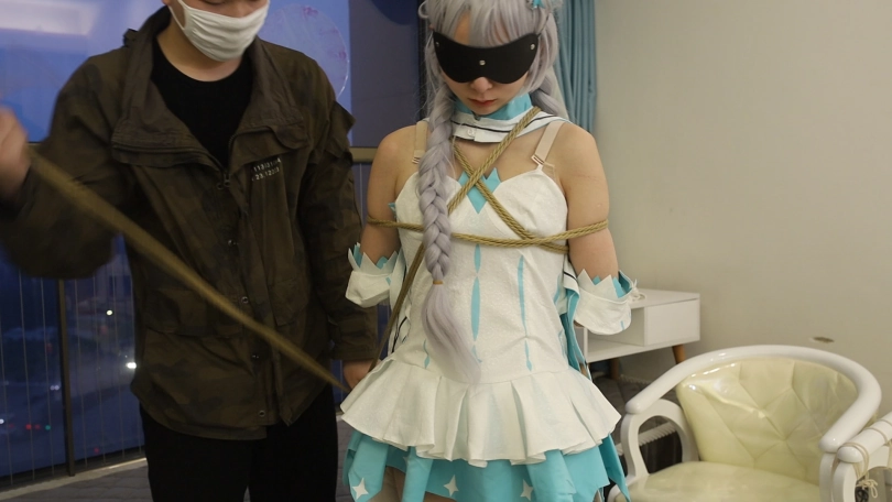 手被绑缚到身后,腿还被强制拉开,只能把自己的黄金地带暴露的一览无遗接受小棒棒的安抚。场面实在诱惑。