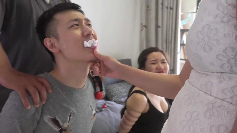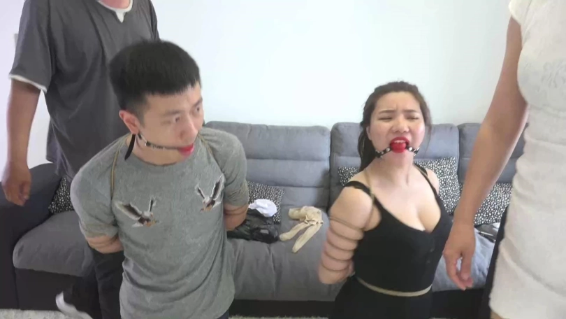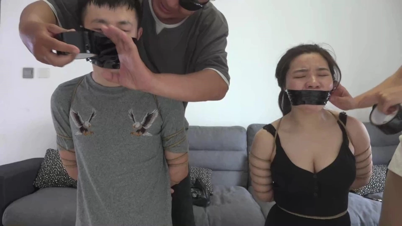 【视频时长】:00:25:59 【文件大小】:713MB 有幸请到著名模特文清客串出演,分享给喜欢的同好。 大胸美女李沐子与男友到文清家要账,看到文清在家拿行李箱收拾东西,文清向李沐子表示,等自己表哥回家来,马上就把钱还给李沐子。 不久,文清的表哥回来,手里拿着一个塑料袋,与文清一同到卧室去。李沐子的男友对李沐子说:“我怎么感觉这两个人不怀好意?”李沐子:“想多了,玩你的手机吧!” 只见文清与自己表哥在卧室里,表哥打开塑料袋,里面是绳索、胶带、口球,递给文清一捆绳索,二人相视一笑,手背后拿着绳索口球打开卧室门朝沙发上坐着的情侣二人走去。 很快,李沐子和男友就被五花大绑,嘴里戴着塞口球跪在沙发前地上扭动身体挣扎着。 文清拿着从李沐子腿上脱掉的原味肉色连裤丝袜,取下李沐子嘴里口球,“你们这是犯罪,赶快放了我们!”“少废话!”文清捏住李沐子鼻子迫使她张大嘴巴,把这条原味肉色连裤丝袜一点点塞入了李沐子的大嘴里,塞得满满的。很快,文清拿着自己穿过没洗的一条白色内裤,取消李沐子男友嘴里口球,“钱我们不要了,放了我们吧!”哀求没用,沐子男友嘴巴也被塞入白色原味内裤,文清与表哥用黑色胶带沿情侣嘴外缠绕,推着行李箱往卧室内走去继续收拾东西。 李沐子与男友坐在沙发前地上扭动身体挣扎着,李沐子希望男友与她一起互助解绳,男友嫌弃她之前不听劝告,扭头不理她,气得李沐子撞了男友几下,二人才背靠背试图互助解绳。 不料,这时文清与表哥收拾好东西,推着行李箱出来,正好看到情侣二人试图解绳,“想跑?!” 文清对表哥说,给二人留点纪念,正好他们的袜子穿了好几天了,只见二人坐在沙发上,文清脱掉腿上穿的一条肉色连裤丝袜,表哥脱掉脚上穿的一双黑色锦纶丝袜,都散发浓郁的脚汗酸臭味,文清说交换塞嘴更有情趣,于是二人拽出李沐子口中湿润的肉色连裤丝袜,文清把表哥的原味黑色臭锦纶丝袜一只只塞入李沐子大嘴里,塞得李沐子表情痛苦呜呜直叫;随后文清再把自己穿过没洗的肉色连裤丝袜塞入李沐子男友口中,与表哥配合,用黑色宽胶布、黑色静电胶带、黑色自粘绷带分别沿情侣二人嘴巴外缠绕封死。 文清与表哥将情侣二人捆成驷马,分别拍照羞辱,再分别用黑色胶带与黑色自粘绷带封在情侣二人眼睛外,最后用卫生间里文清穿过没洗的一条肉色连裤丝袜套在李沐子男友头上,用一条黑色原味连裤丝袜套在李沐子头上,这样情侣二人只能在黑暗中忍受口中与头上煎熬呜呜挣扎着。 文清与表哥带着行李箱,冲地上二人说再见离开了。李沐子与男友奋力挣扎,可始终无济于事,只能忍受着束缚与气味的煎熬闷哼呻吟着。 看点:情侣捆绑、雌雄大盗、二次捆堵、内裤连裤丝袜锦纶丝袜塞嘴、胶布绷带多重缠绕封嘴封眼、连裤丝袜套头、裸足脚面。 ![]() ![]() ![]() ![]() ![]() ![]() ![]() ![]() ![]() ![]() ![]() ![]() ![]() ![]() ![]() ![]() ![]() ![]() ![]() ![]() ![]() ![]() ![]() ![]() ![]() ![]() ![]() ![]() ![]() ![]() ![]() ![]() ![]() ![]() ![]() ![]()