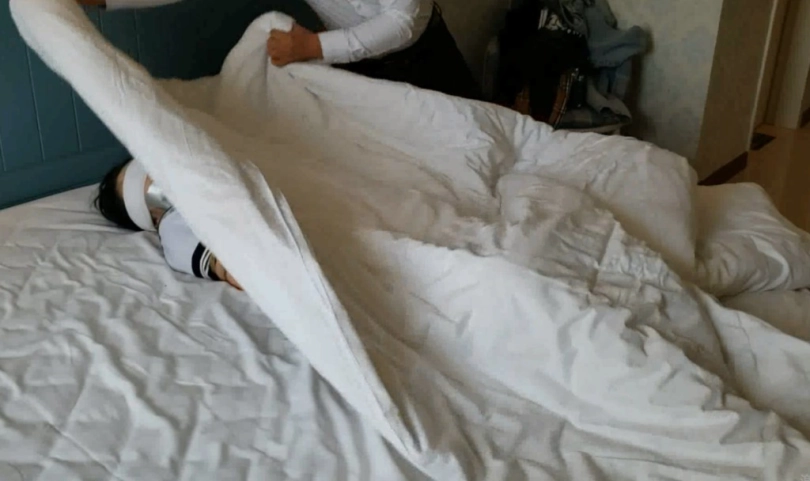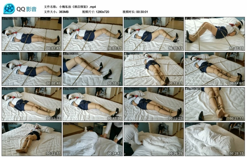 小梅和网友“约炮”不料遭遇抢劫,男人抢光她所有财物和手机以后,把她用10捆麻绳牢牢固定在酒店大床上面,堵嘴蒙眼肆意猥亵揩油,逼问小梅银行卡密码和支付宝密码,小梅不肯说就用棉被蒙住....小梅最后能否顺利脱险,酒店服务员在门外听见屋内呜呜叫声是否会来敲门,请看小梅私拍,疯狂的酒店绑架....