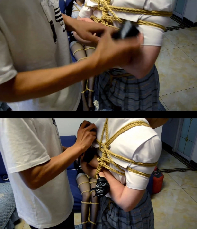 师生被捆绑挣扎,手指也被胶带包裹,性感师生薄黑丝裤袜,2位美女挣扎蠕动不要错过!