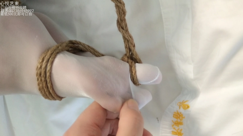 不得不说麻绳硬硬得质感,加上4mm得纤细程度,紧缚效果一级棒。带上扣球,绑上脚趾。一点挣扎余地都不留。肆意玩弄白丝小脚,美翻了。