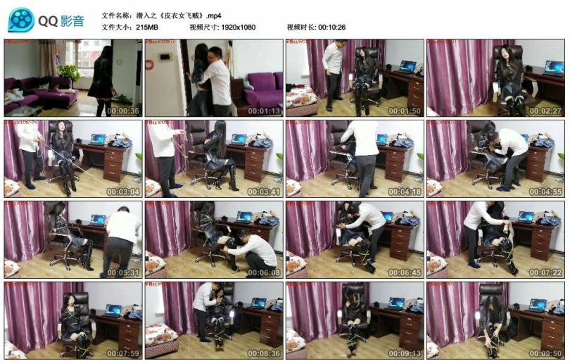 片长11分钟,1080p全高清拍摄。故事讲述了一个皮衣女贼去盗窃,在逃走的时候不慎碰掉了花瓶,被卧室睡觉的主人发现后擒获,捆绑堵嘴,审问虐待,最后紧缚在椅子上面,但女贼竟“练过”逃脱术,趁主人不被仓皇而逃.....
