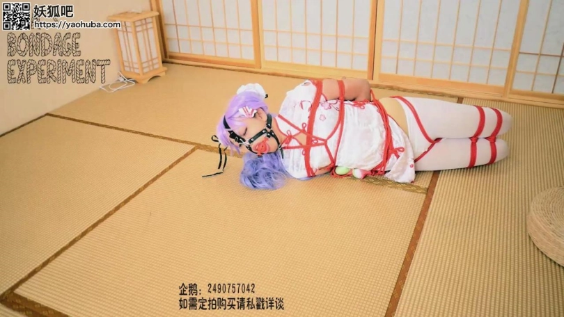 在马具口球极限驷马的情况下,尽力在屋内蠕动挣扎