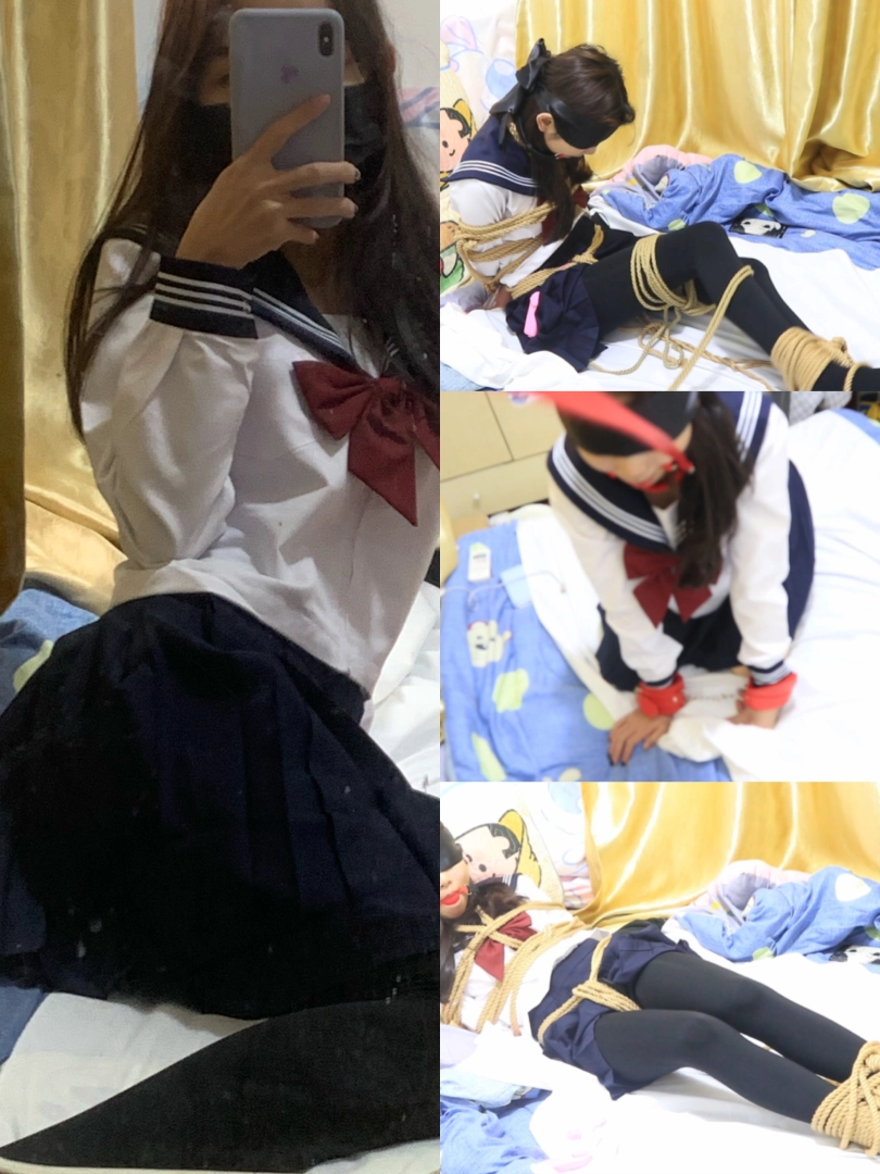 JK 为了应季 没有选择太薄的丝袜 同时妹子想体验真实绑架,没有用特别专业绑法,甚至有点松可以挣扎一下