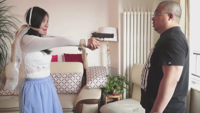 女井林静卧底被捕,穿黑丝,带头纱,丝袜勒嘴,抢过歹徒的手枪后,持枪但仍被反捕。之后又是白布蒙嘴。后歹徒将林静用大字型绑在床上,肉丝袜塞嘴,接着胶带封嘴。